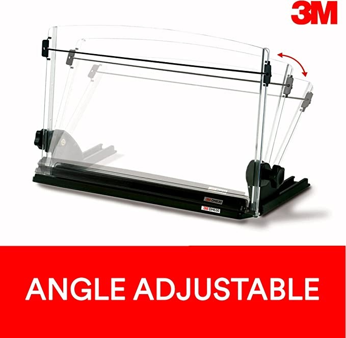 3M ADJUSTABLE DOCUMENT COPY CLIPS, EMBEDDED MONITOR* MINIMIZES HEAD AND NECK MOVEMENT, 150-SHEET PAPER CAPACITY FOR BOOKS, ELASTIC WIRE RAILS KEEP PAGES OPEN, 14 INCHES WIDE, BLACK (DH630)