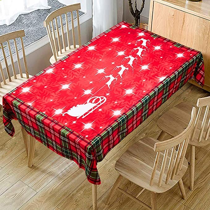 Christmas Printed Fabric Tablecloth ,Oil-Proof and Waterproof Rectangle Table Cloth, Durable and Decorative Table Cover for Christmas and Thanksgiving