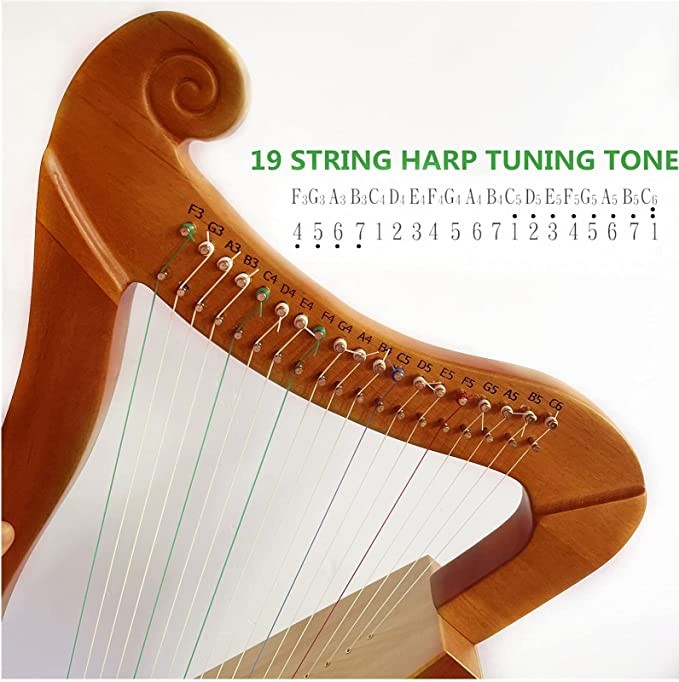 Harp, 19 string mahogany harp for adults and children beginners with piano bag tuning wrench black with replacement strings