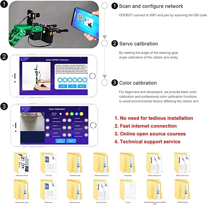 • 【Easy to Get Started and Online Technical Support】The assembled robotic arm can be directly controlled with simple installation and quick connection to the network (based on factory captured images). However, this robotic arm is suitable for DIY makers with basic Python programming knowledge. Yahboom provides extensive course materials and online technical support. If you encounter difficulties, please contact Yahboom