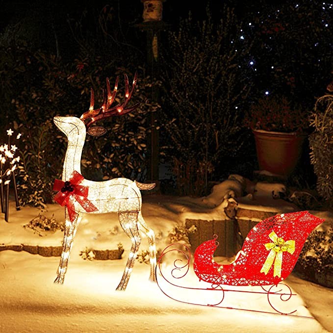 Zcaukya Light Up Reindeer & Sleigh Yard Decoration