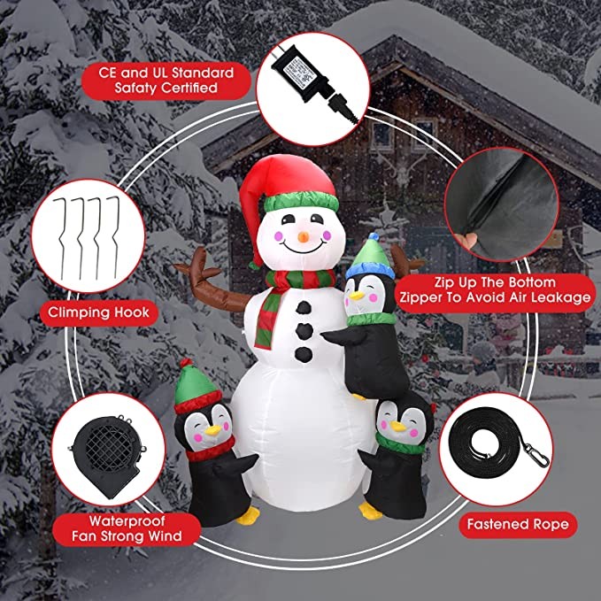 6FT Christmas Inflatable Decoration,Christmas Inflatable Snowman with Penguins Decoration with LEDs Blow Up Inflatables for Christmas/Holiday/Party/Yard/Garden