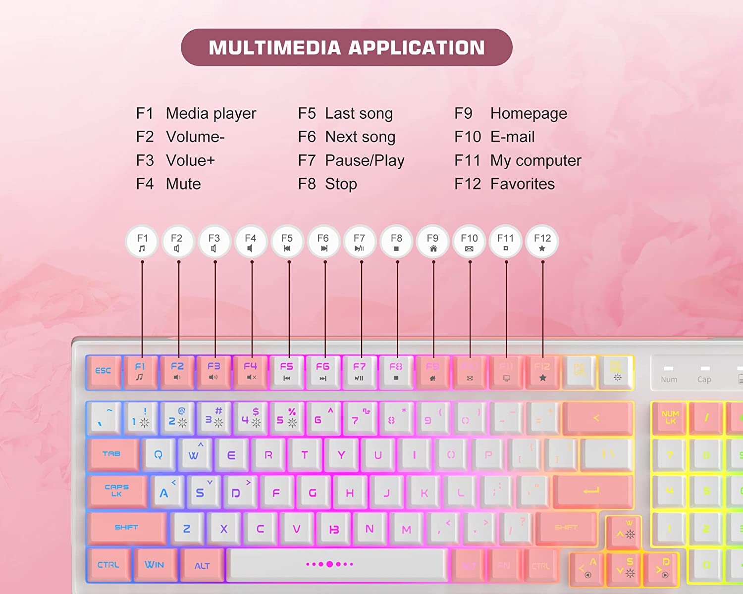 • Colorful design and 2.4G stable wireless connection White-pink contrast color design, will not repeat and fade. The stylish and refreshing appearance brings you visual enjoyment and a good working mood. Powerful and reliable 2.4GHz technology ensures connectivity, plug and play.