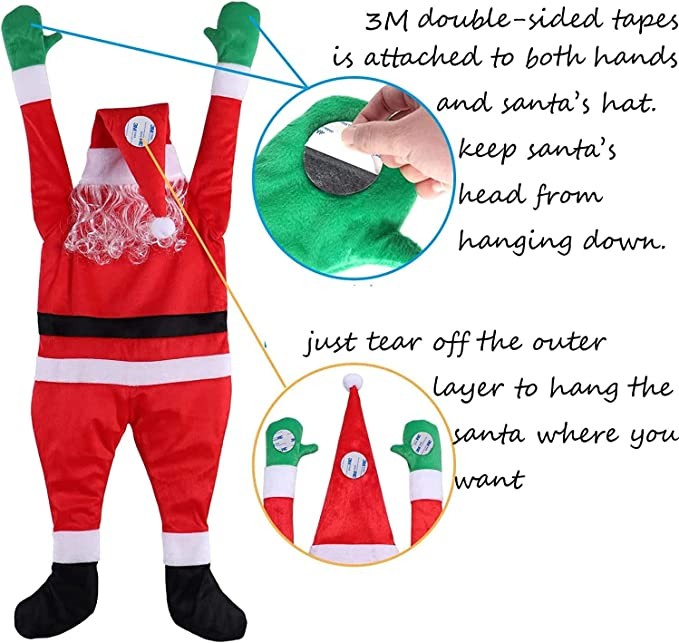 ❀:Climbing hanging santa claus has perfect size and weight, very suitable for hanging on windows, doors or indoors and outdoors to decorate your warm home.