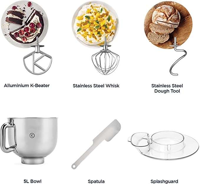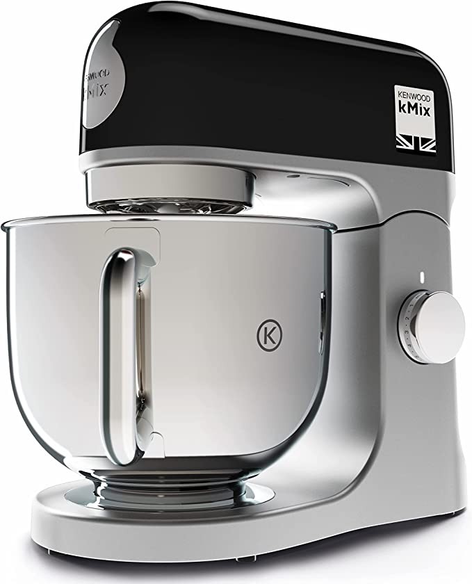 Kenwood kMix Kitchen Machine KMX750BK, 5L Stainless Steel Mixing Bowl, Safe-Use Safety System, Metal Housing, 1000W, 3-Piece French Pastry Set & Splash Cover, Black
