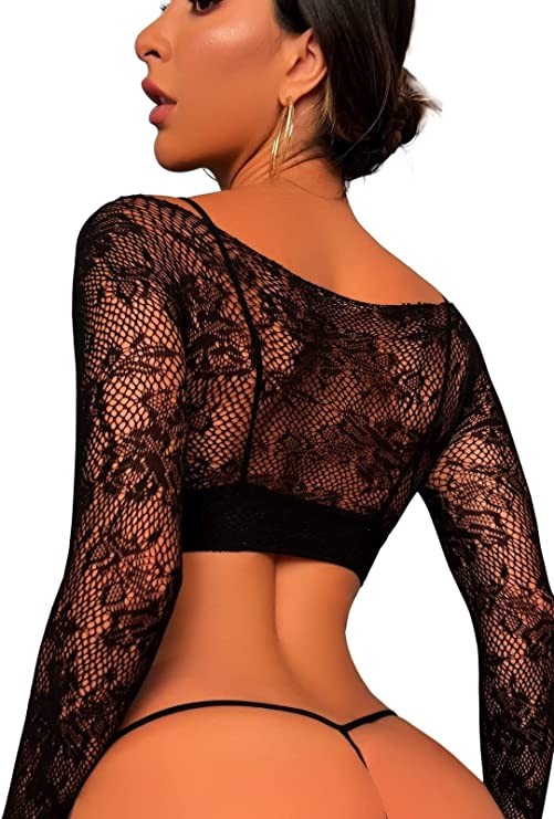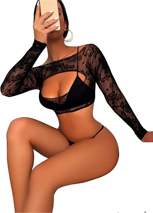 LuxShow Women's Sexy Lingerie Set Lace Floral Print Sheer Mesh Two Piece Babydoll Panties