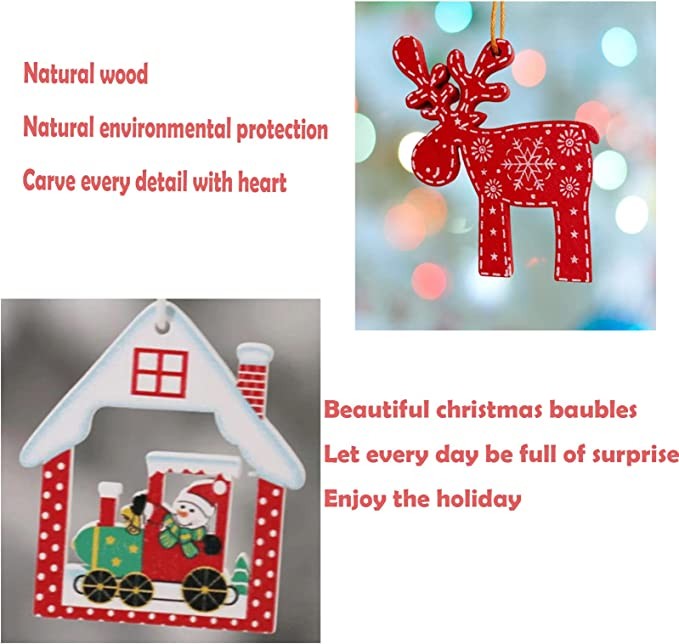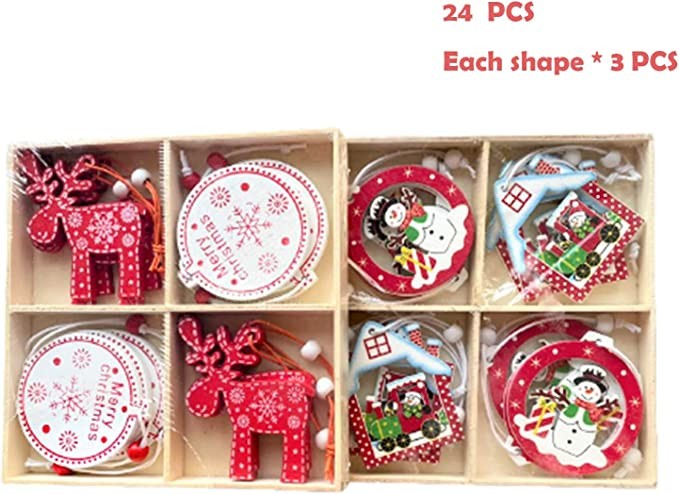 Color:Red and white 24 Pcs 24 Pcs Wooden Christmas Ornaments Set Wood Christmas Tree Ornaments Kit with Wooden Gift Box Wood Christmas ornaments for Arts and crafts DIY, Craft Wood kit Crafts Christmas Ornaments An ideal Christmas Gift for your kids , family, friends, sister etc. These ornaments are made of natural wood, crafted with care, lightweight, and beautiful. Each hanging decoration also works as a fantastic background photo prop at parties. Applicable scene: shopping mall window, Christmas tree and other Christmas event decoration scenes The package includes: ◆ 6 x Snowman ◆ 6x house ◆ 24 x hanging rope ◆ 6 x snowflakes ◆ 6 x Reindeer