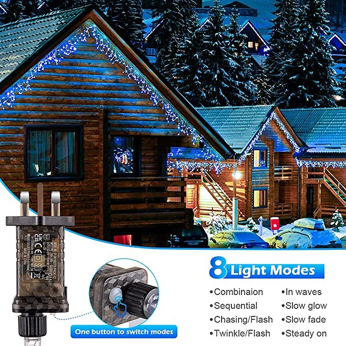 • Remote control: When you hang your icicle light from the eaves or roof, switching the light mode is a breeze with the remote control.