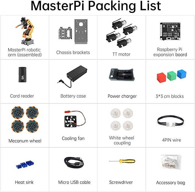 • Tip: Raspberry Pi and TF card are not included!!!! Please buy it yourself before assembling the robotic arm.