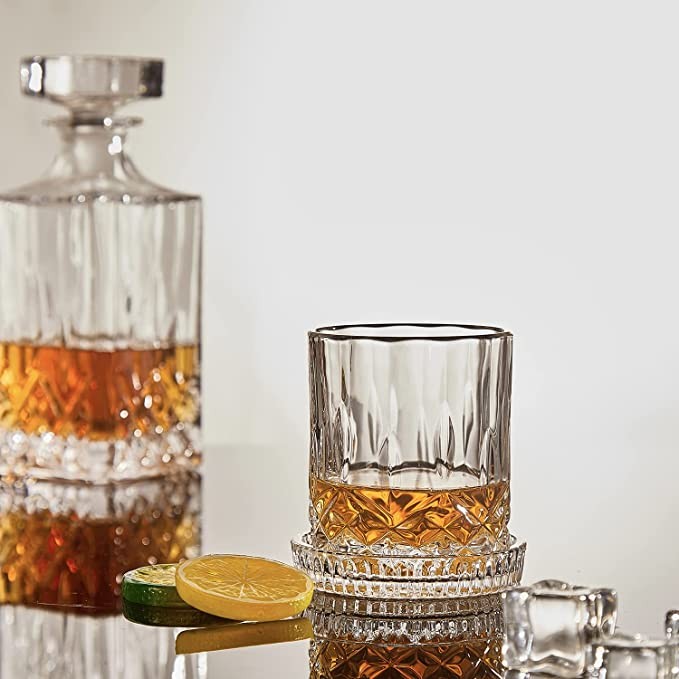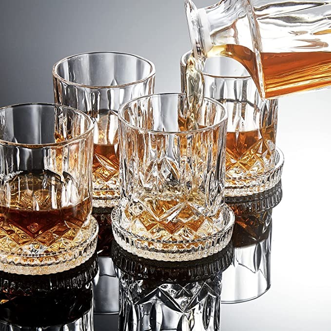 Sendimic 9 Piece Vintage Whiskey Dispenser 4 Coasters Unique Luxury Black Gift Box for Whiskey, Scotch, Bourbon, Rum and More